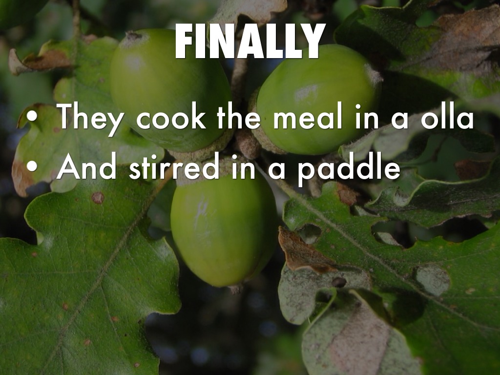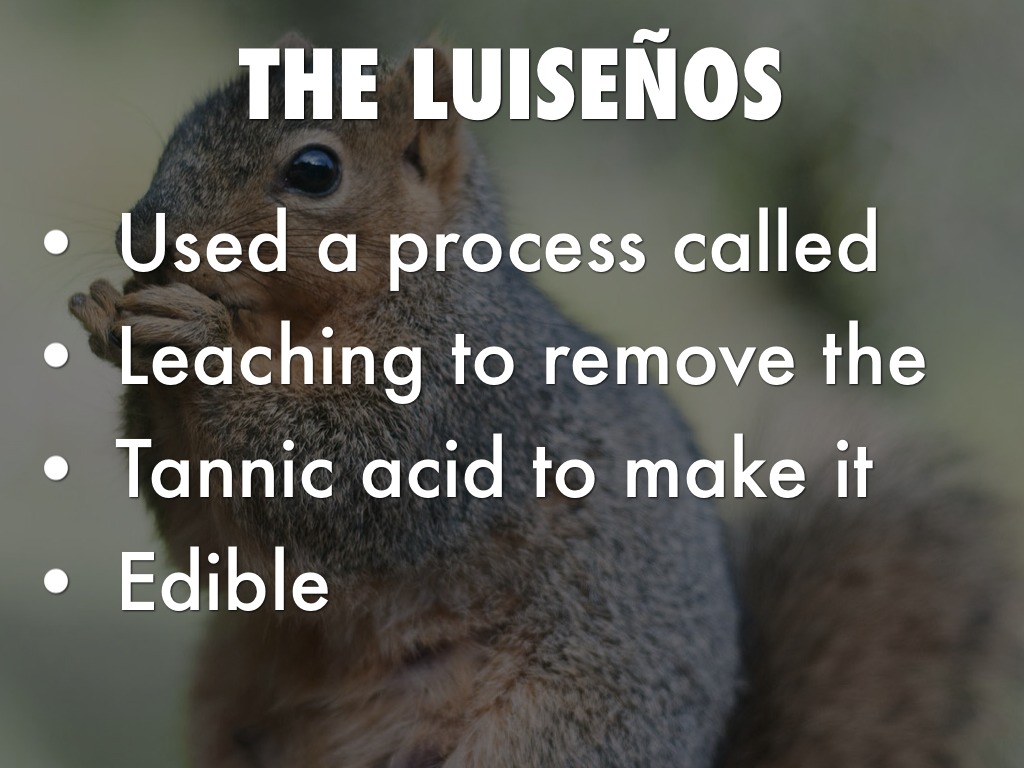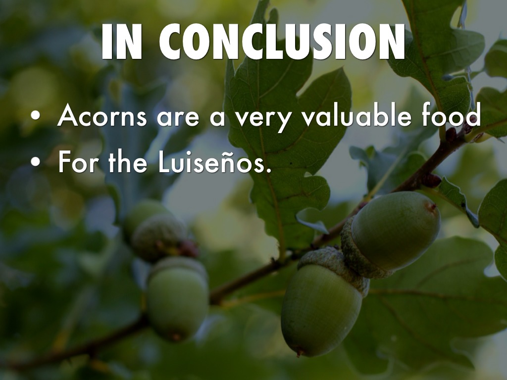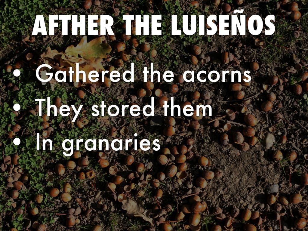 IN NORTH AMERICA ACORNS ARE A STAPLE FOOD FOR THE LUISEÑOS