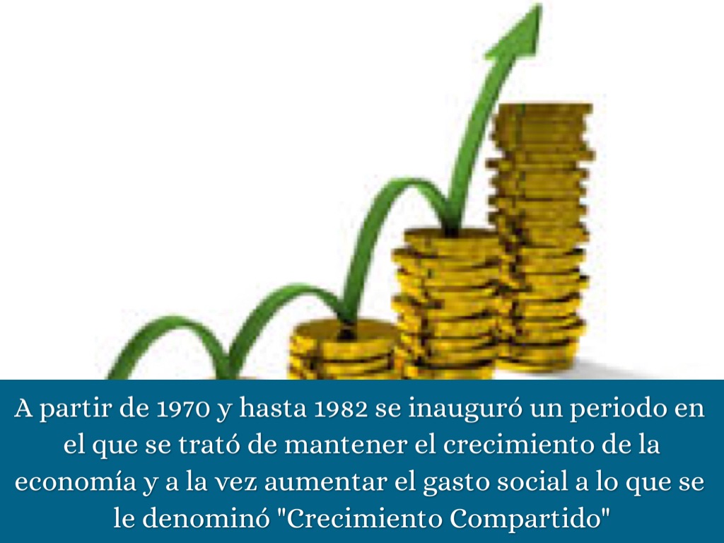 A partir de 1970 y hasta 1982 se inauguró un periodo en el que se trató de mantener el crecimiento de la economía y a la vez aumentar el gasto social a lo que se le denominó "Crecimiento Compartido"