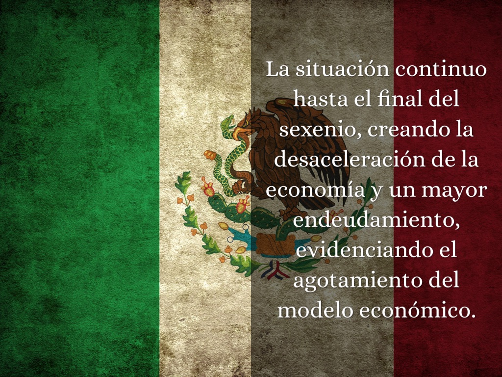 La situación continuo hasta el final del sexenio, creando la desaceleración de la economía y un mayor endeudamiento, evidenciando el agotamiento del modelo económico.