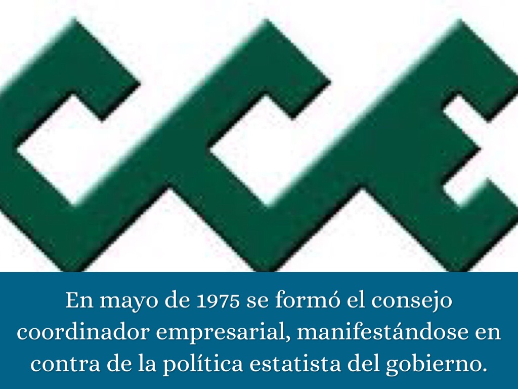 En mayo de 1975 se formó el consejo coordinador empresarial, manifestándose en contra de la política estatista del gobierno.