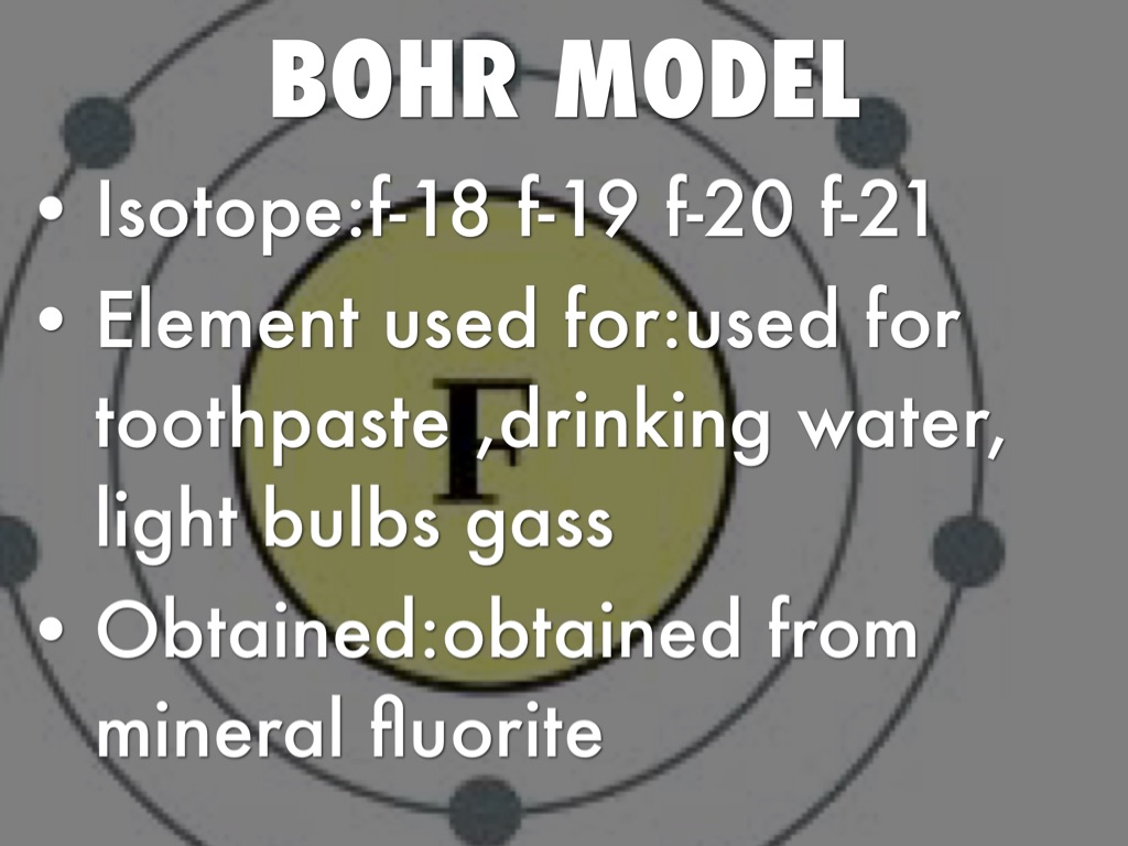 Element used for:used for toothpaste ,drinking water, light bulbs gass