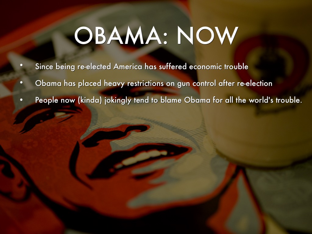 • People now (kinda) jokingly tend to blame Obama for all the world's trouble.