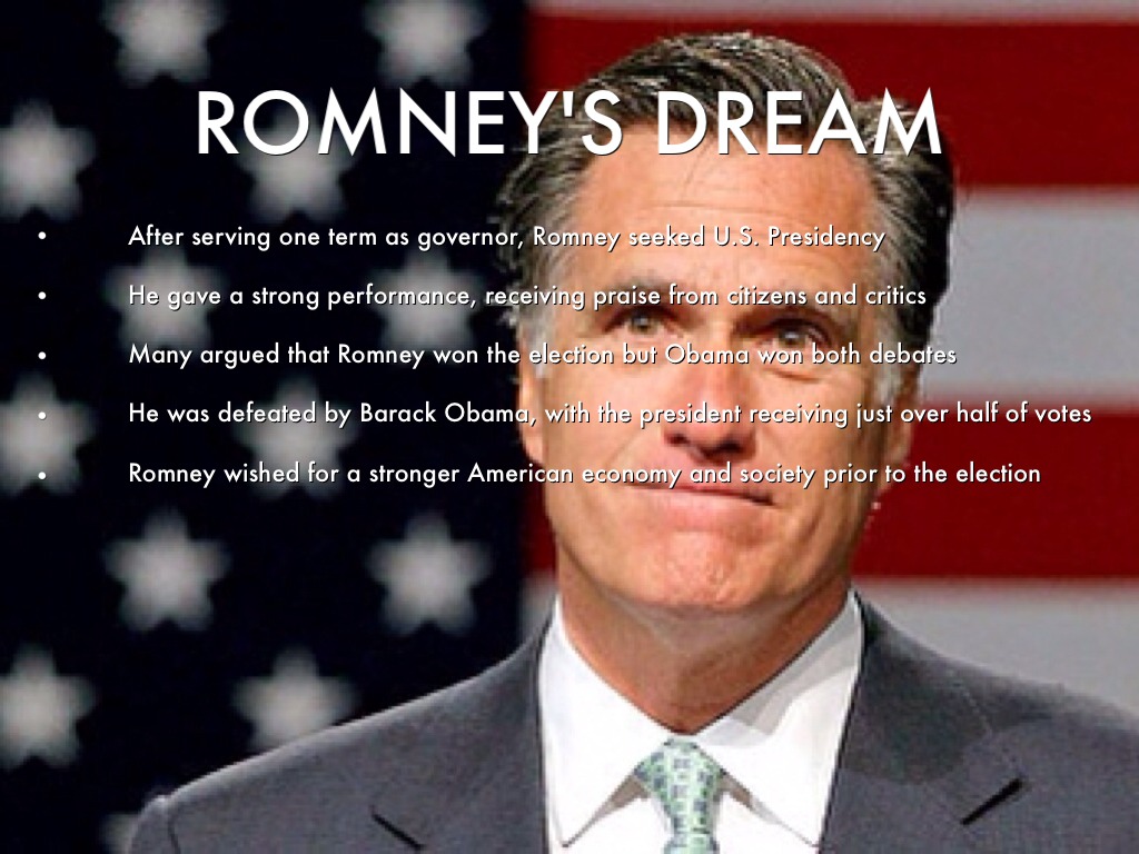 • After serving one term as governor, Romney seeked U.S. Presidency