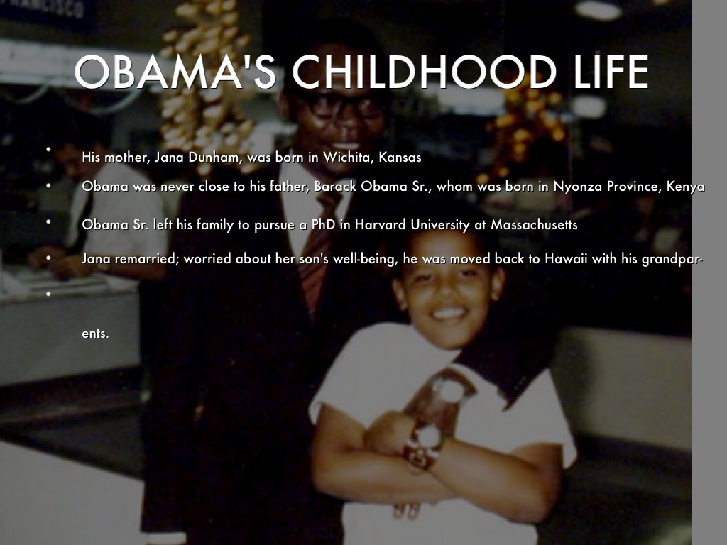 • Obama Sr. left his family to pursue a PhD in Harvard University at Massachusetts