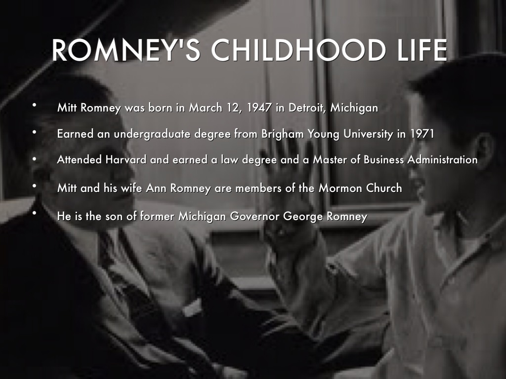 • Mitt Romney was born in March 12, 1947 in Detroit, Michigan