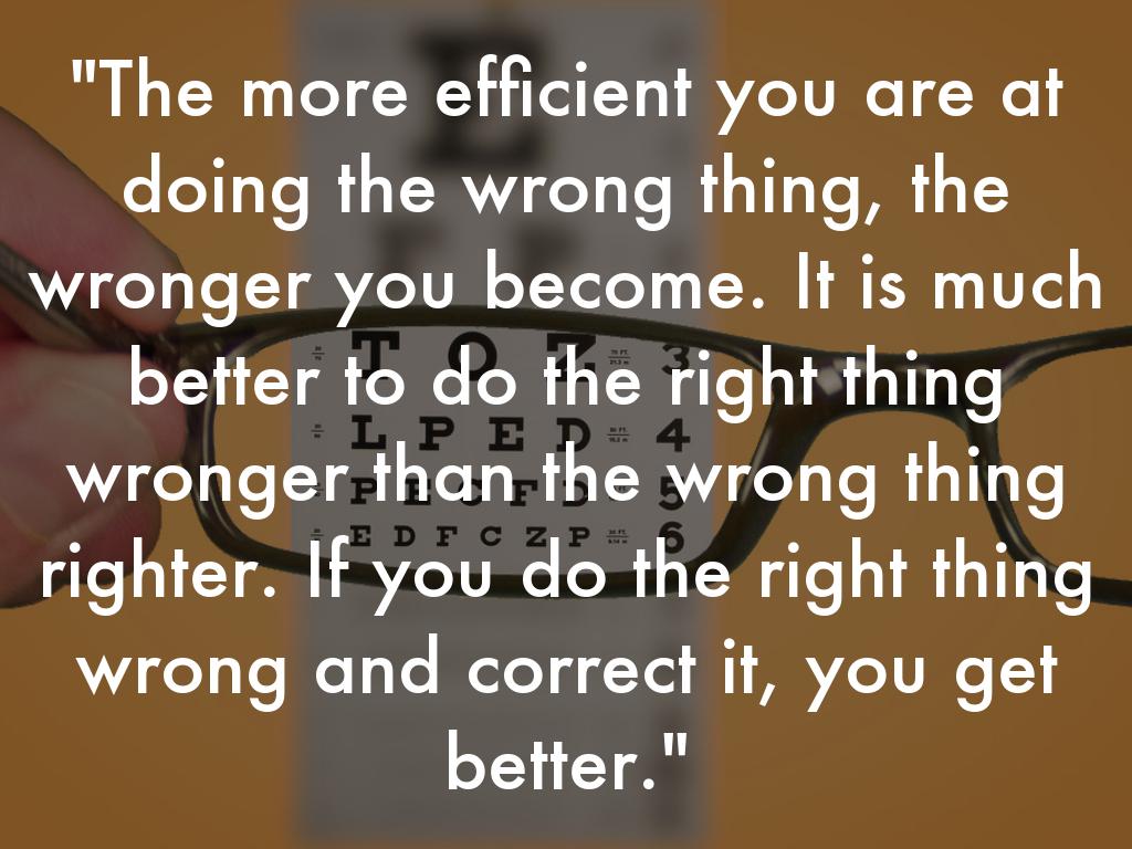 "The more efficient you are at doing the wrong thing, the wronger you become. It is much better to do the right thing wronger than the wrong thing righter. If you do the right thing wrong and correct it, you get better."