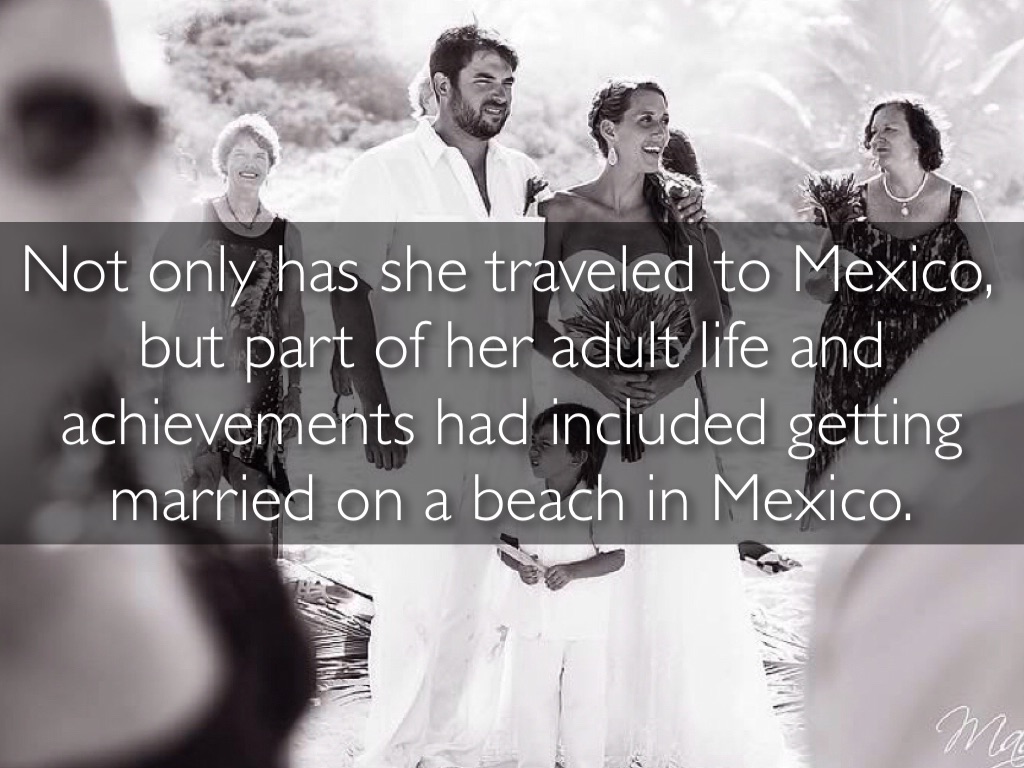 Not only has she traveled to Mexico, but part of her adult life and achievements had included getting married on a beach in Mexico.