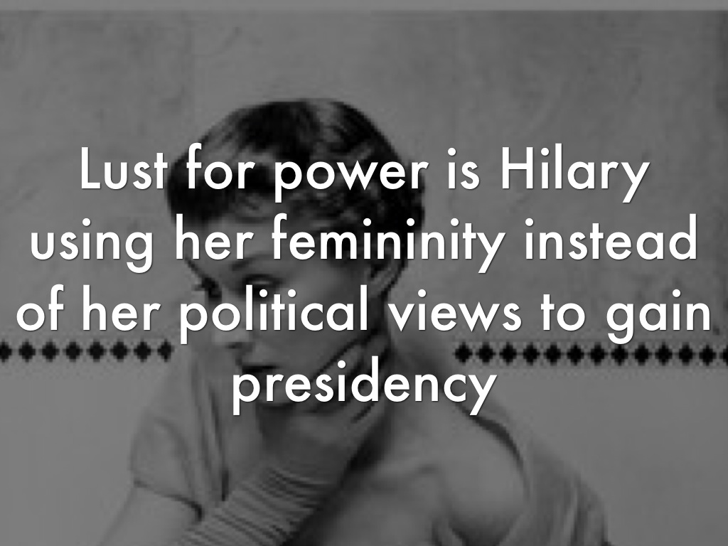 Lust for power is Hilary using her femininity instead of her political views to gain presidency