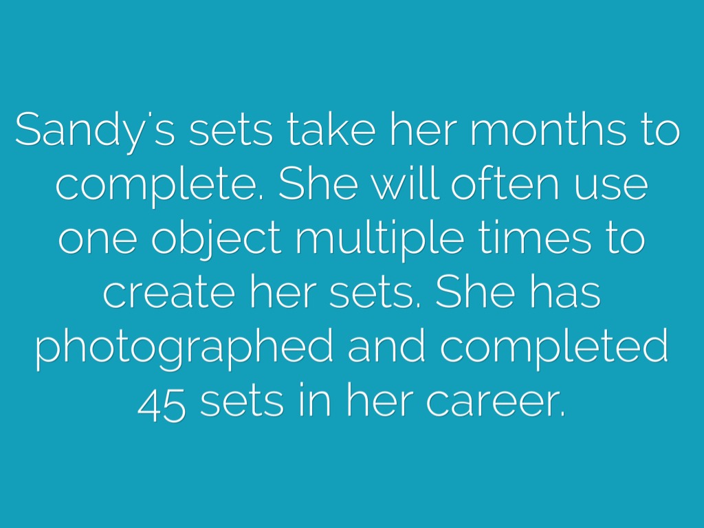 Sandy's sets take her months to complete. She will often use one object multiple times to create her sets. She has photographed and completed 45 sets in her career.