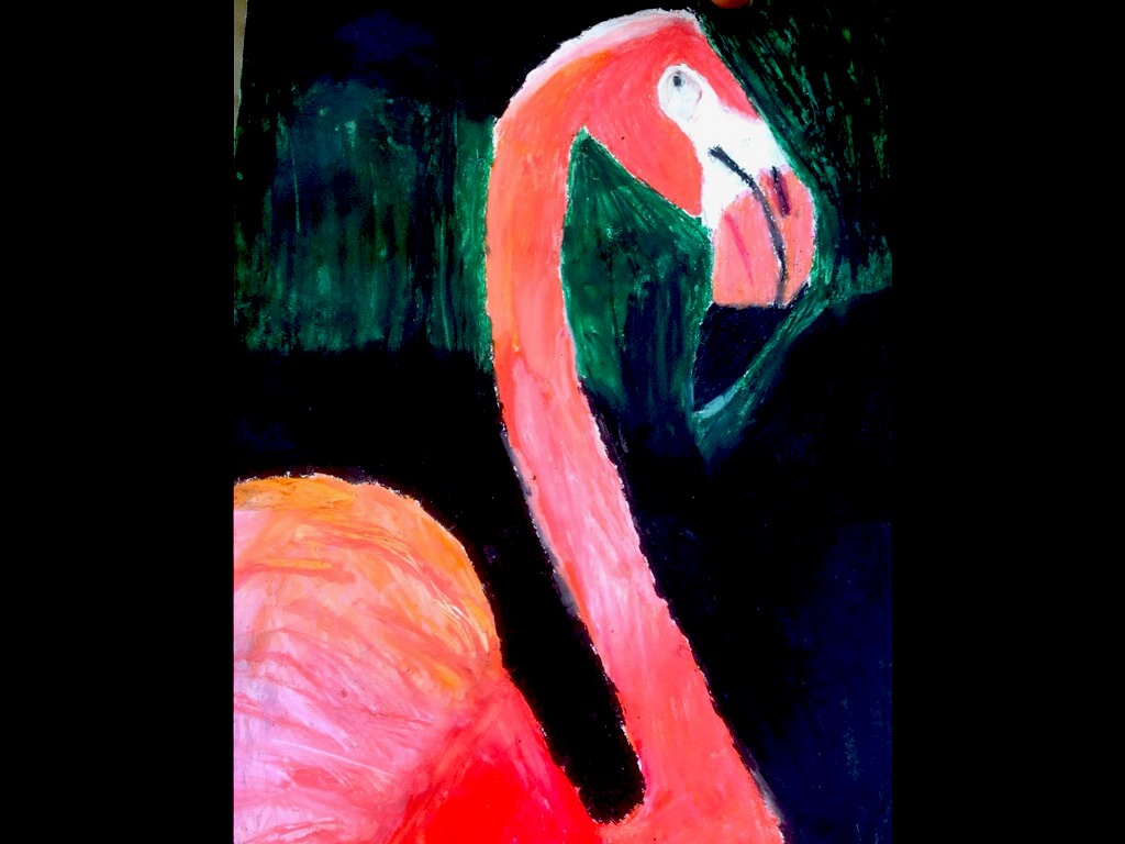 This is the flamingo that I drew and colored with oil pastels the week of the 12th of May.