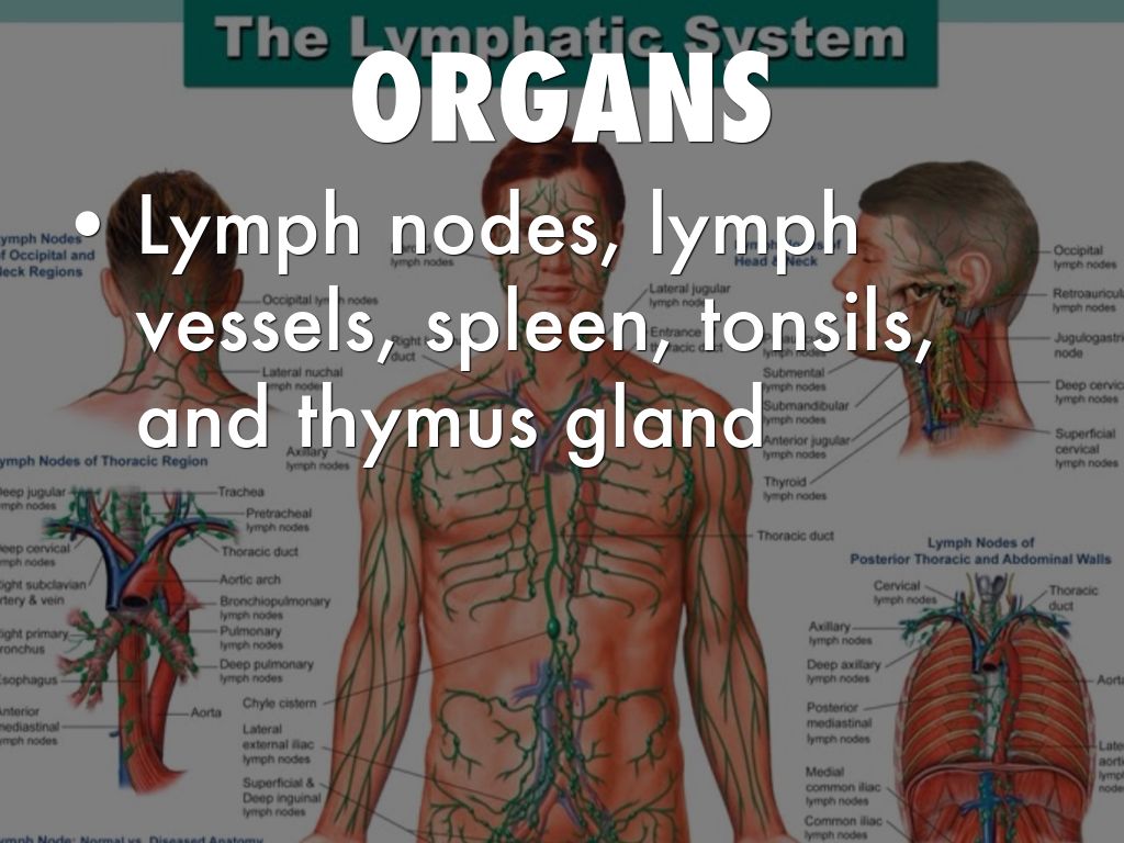 Lymph nodes, lymph vessels, spleen, tonsils, and thymus gland