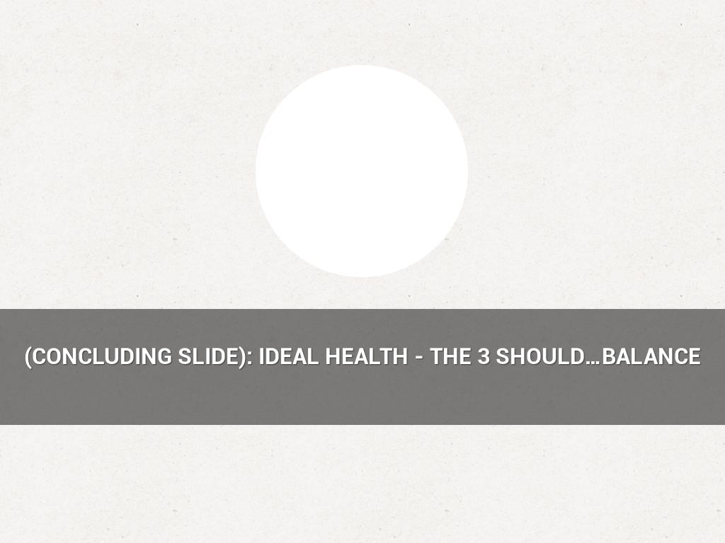 (Concluding Slide): Ideal Health - the 3 should…BALANCE