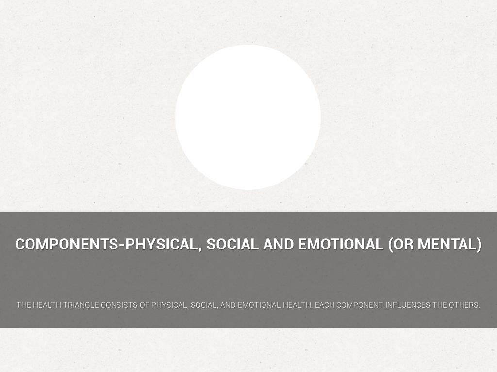 The Health Triangle consists of physical, social, and emotional health. Each component influences the others.