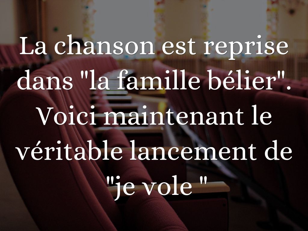 La chanson est reprise dans "la famille bélier". Voici maintenant le véritable lancement de "je vole "