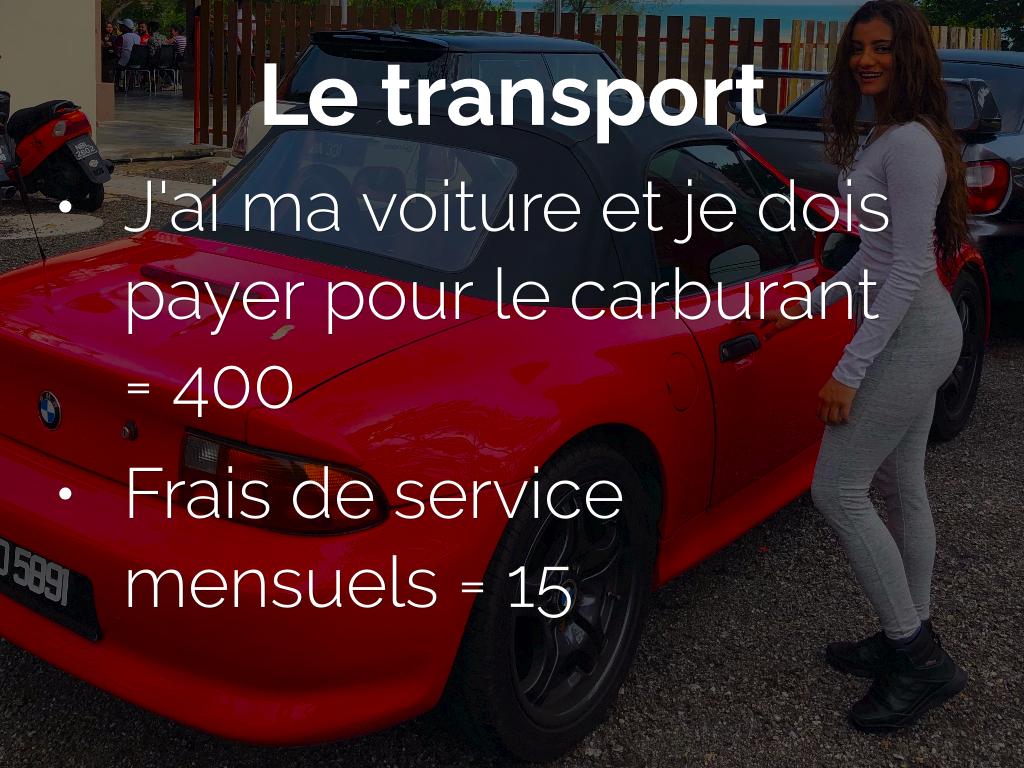 J'ai ma voiture et je dois payer pour le carburant = 400