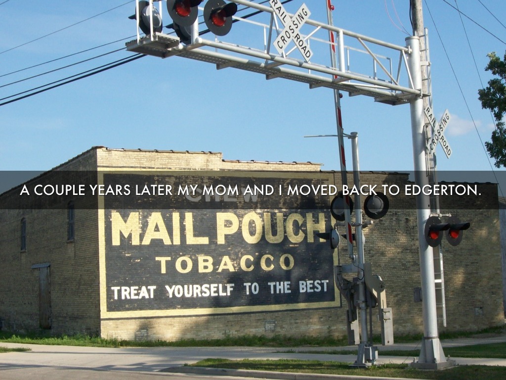 A COUPLE YEARS LATER MY MOM AND I MOVED BACK TO EDGERTON.
