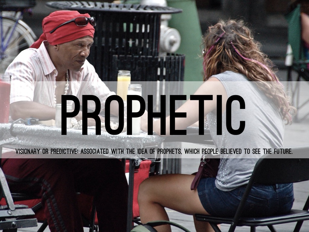 VISIONARY OR PREDICTIVE; ASSOCIATED WITH THE IDEA OF PROPHETS, WHICH PEOPLE BELIEVED TO SEE THE FUTURE.
