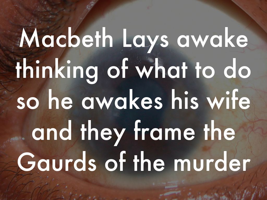 Macbeth Lays awake thinking of what to do so he awakes his wife and they frame the Gaurds of the murder