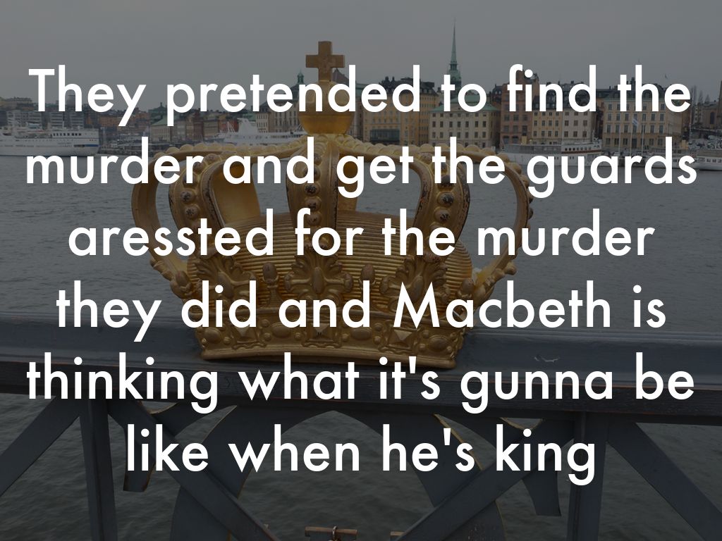 They pretended to find the murder and get the guards aressted for the murder they did and Macbeth is thinking what it's gunna be like when he's king