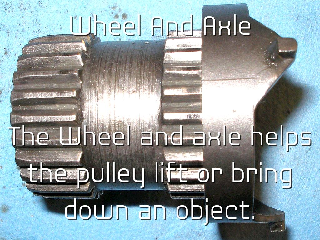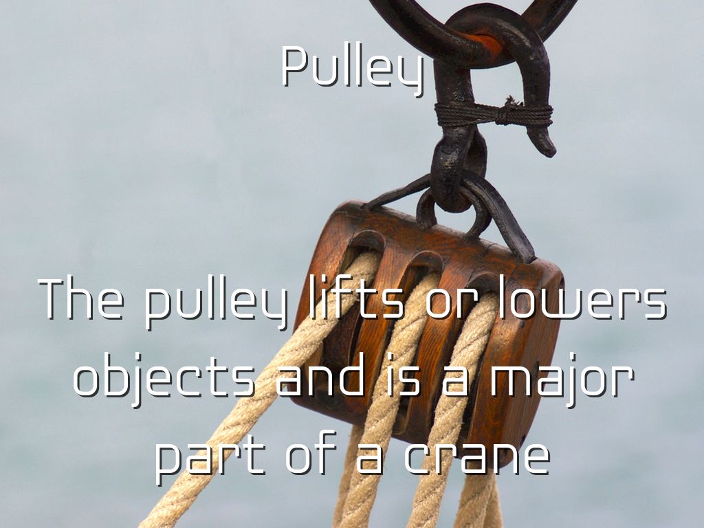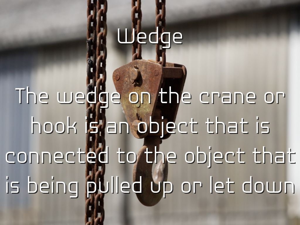 The wedge on the crane or hook is an object that is connected to the object that is being pulled up or let down