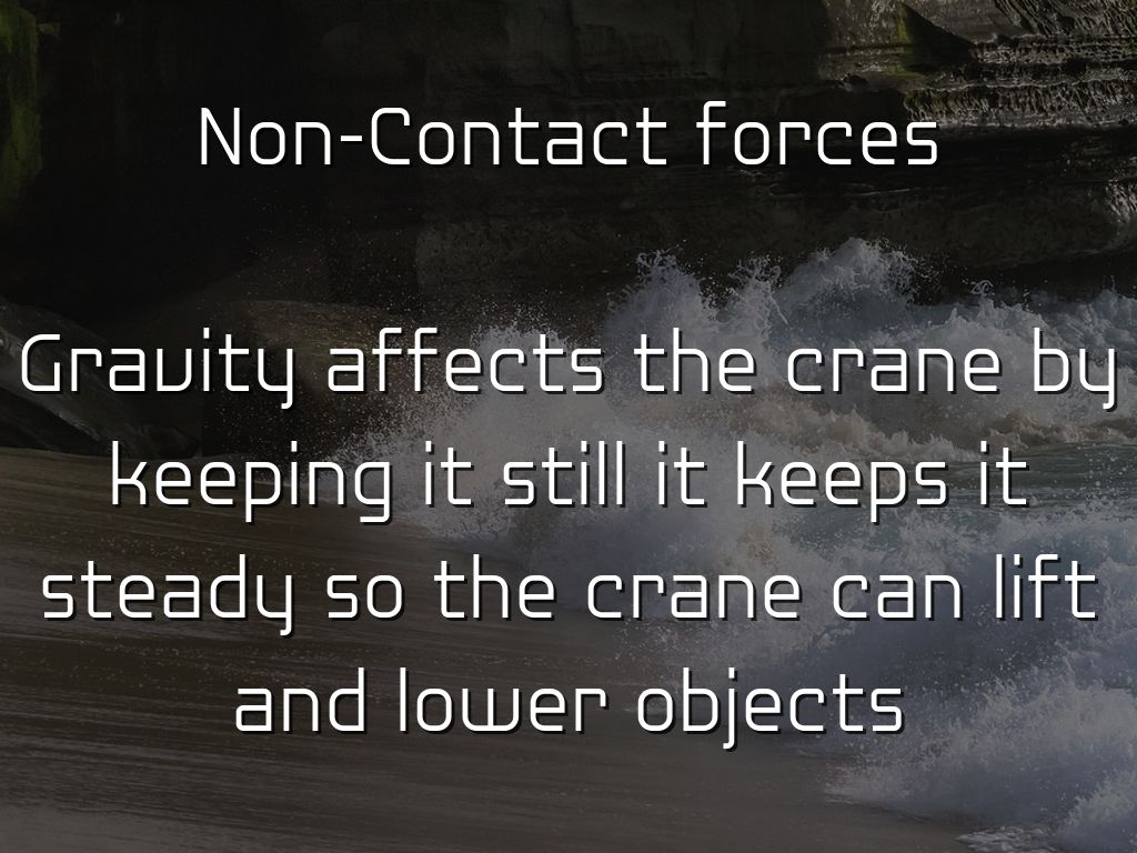 Gravity affects the crane by keeping it still it keeps it steady so the crane can lift and lower objects