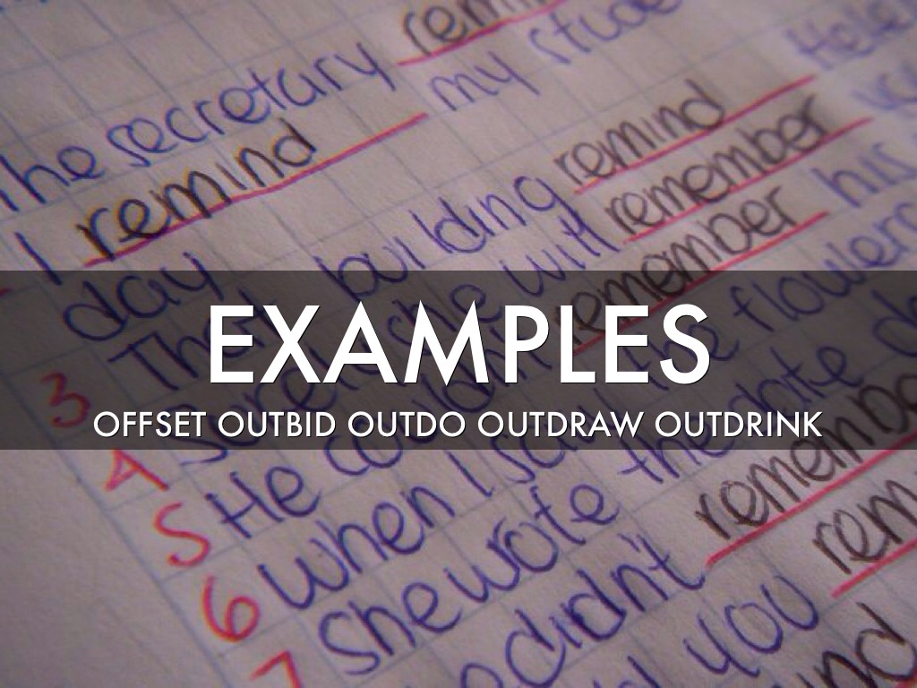 OFFSET OUTBID OUTDO OUTDRAW OUTDRINK