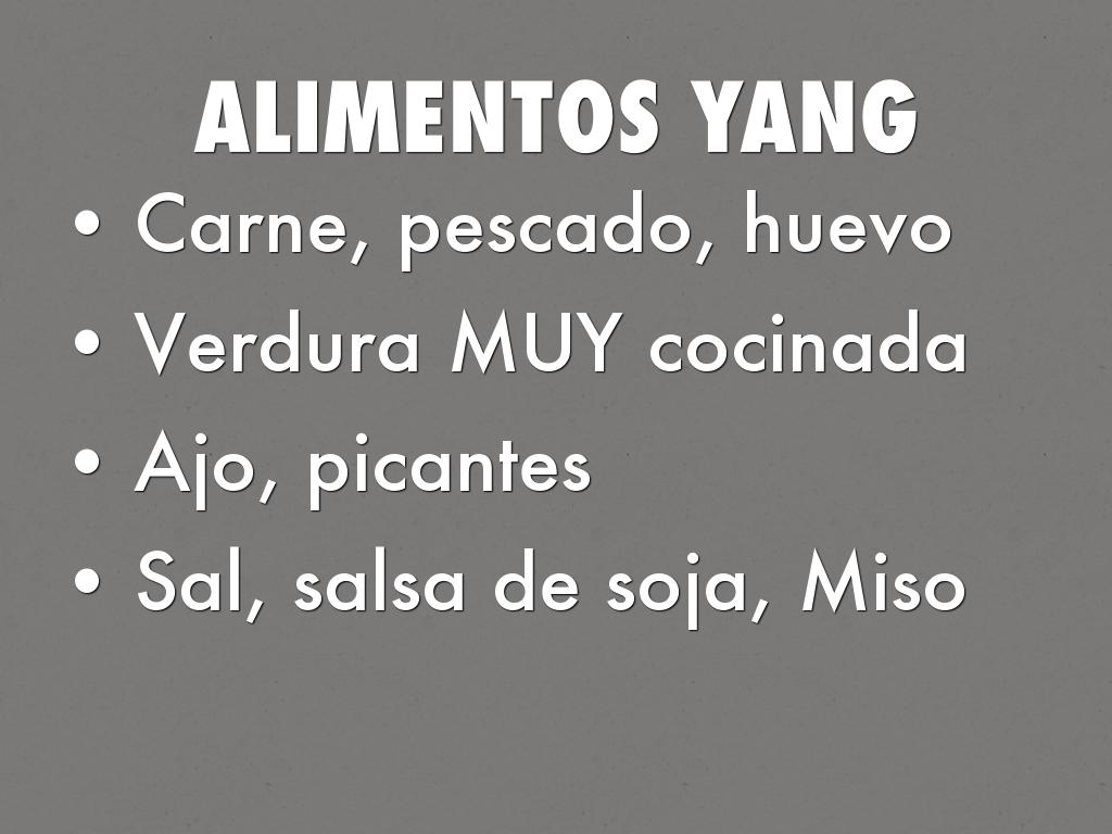 - A más tiempo de cocción más Yang (Asados, hornos, cocidos)