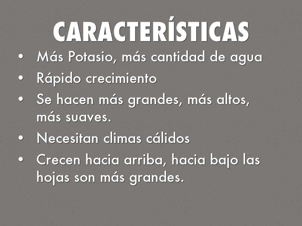 - Crecen hacia arriba, hacia bajo las hojas son más grandes.