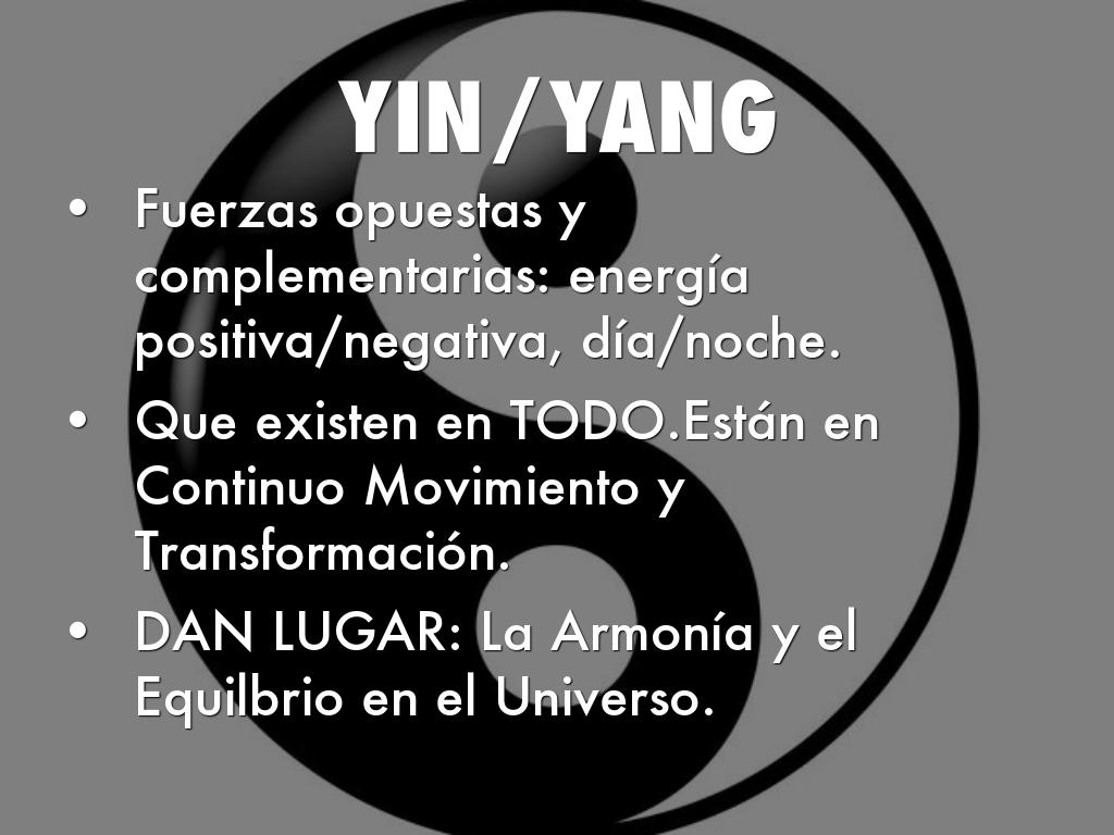 - Fuerzas opuestas y complementarias: energía positiva/negativa, día/noche.