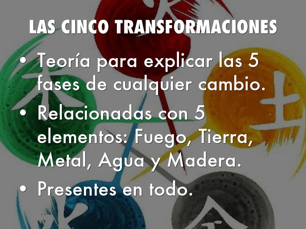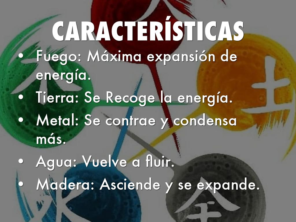 - Relacionadas con 5 elementos: Fuego, Tierra, Metal, Agua y Madera.