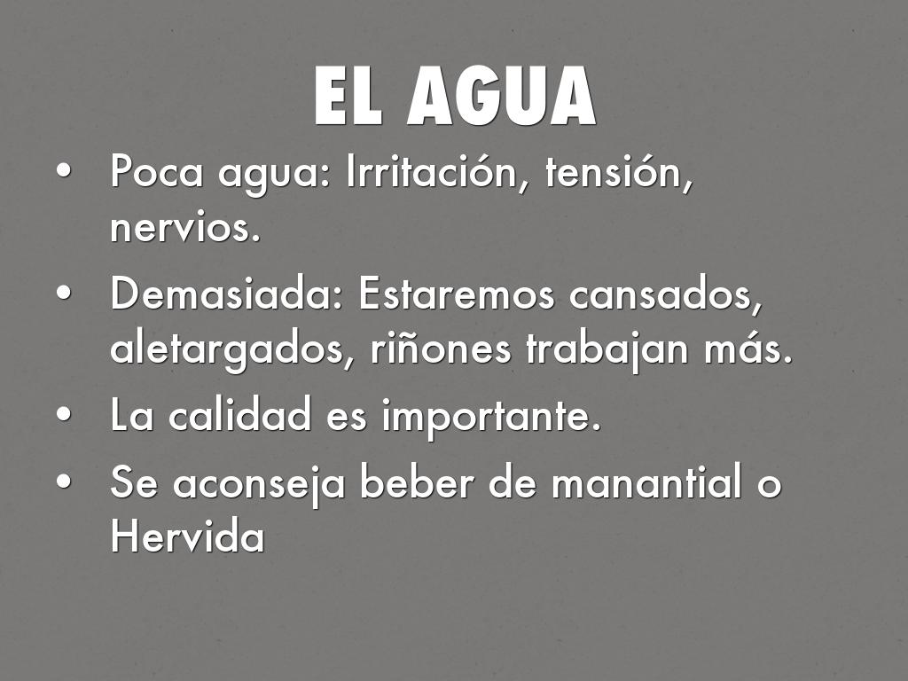 - Demasiada: Estaremos cansados, aletargados, riñones trabajan más.