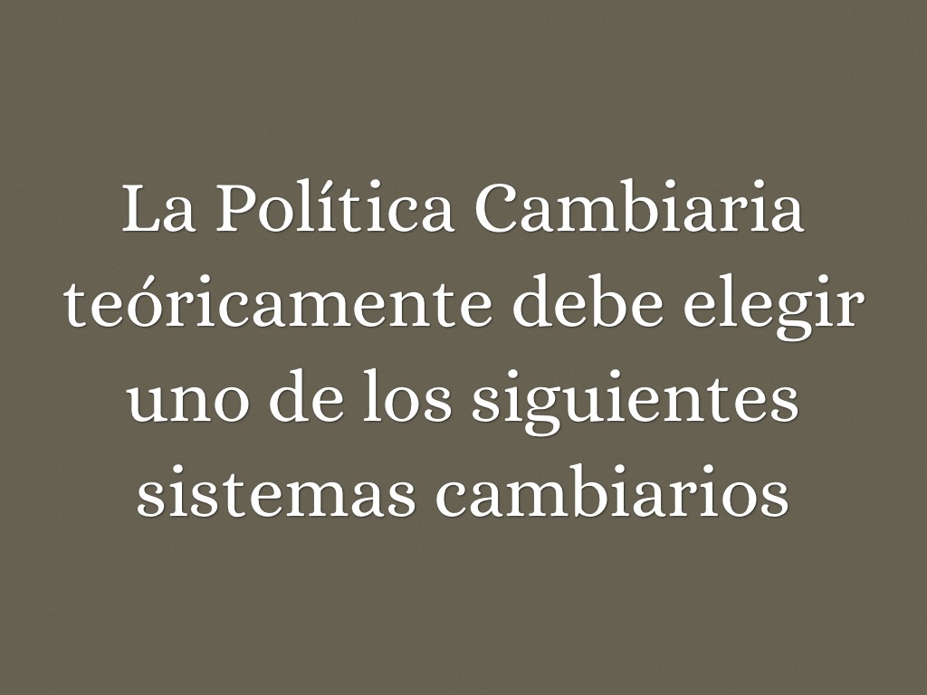 La Política Cambiaria teóricamente debe elegir uno de los siguientes sistemas cambiarios
