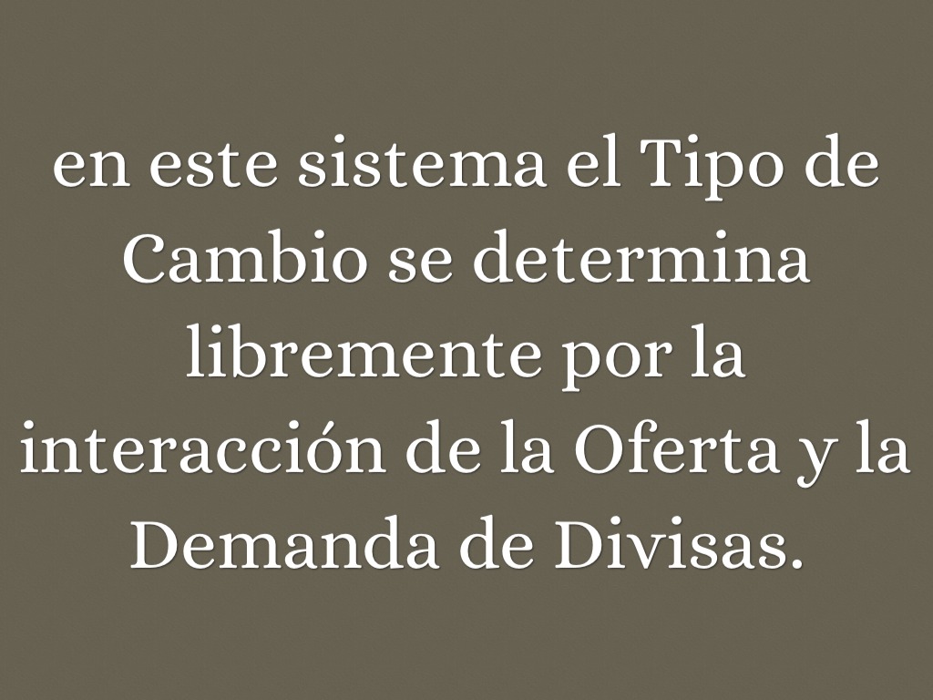 en este sistema el Tipo de Cambio se determina libremente por la interacción de la Oferta y la Demanda de Divisas.