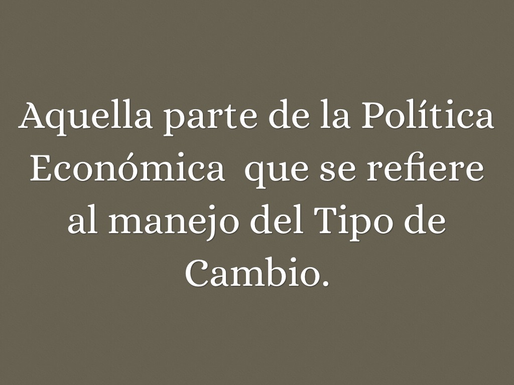 Aquella parte de la Política Económica que se refiere al manejo del Tipo de Cambio.