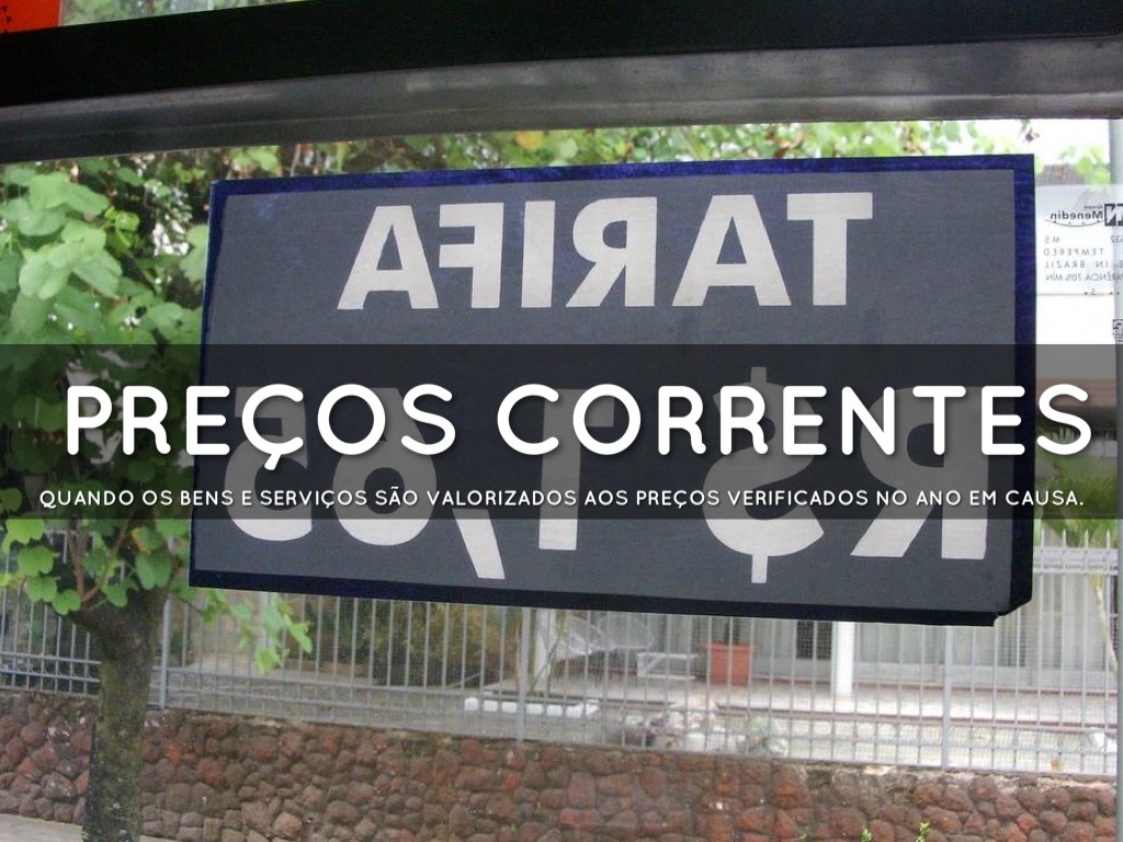 QUANDO OS BENS E SERVIÇOS SÃO VALORIZADOS AOS PREÇOS VERIFICADOS NUM ANO CONSIDERADO COMO BASE.