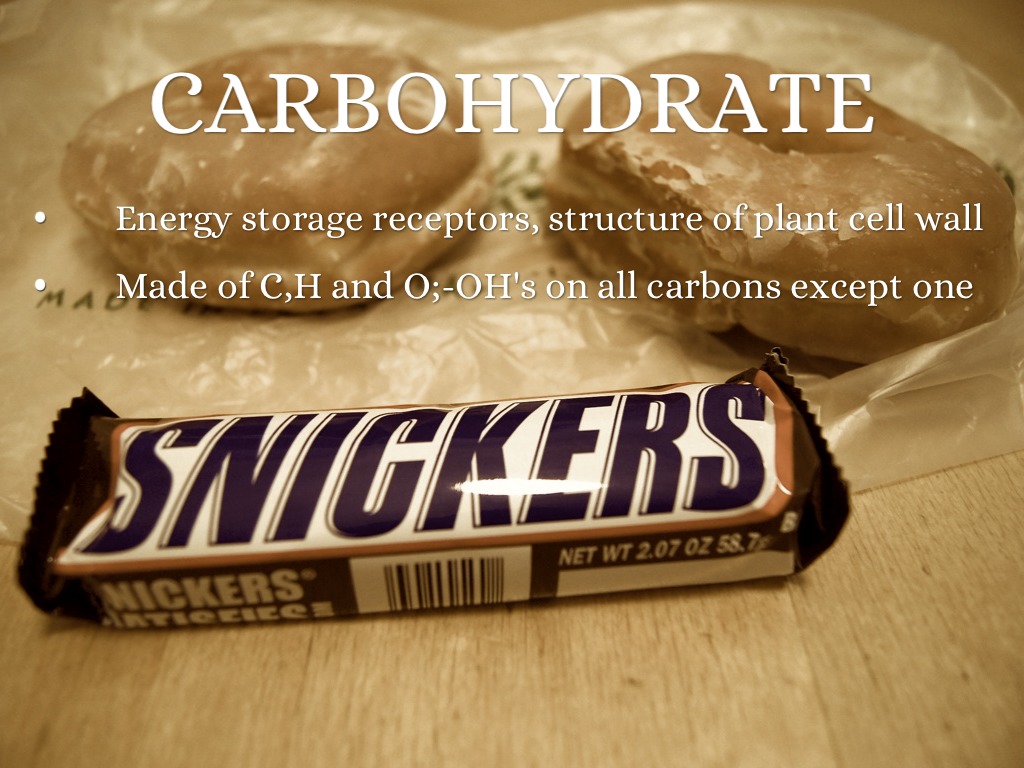 Made of C,H, and O; lots of C-H bonds;may have some C=C bonds