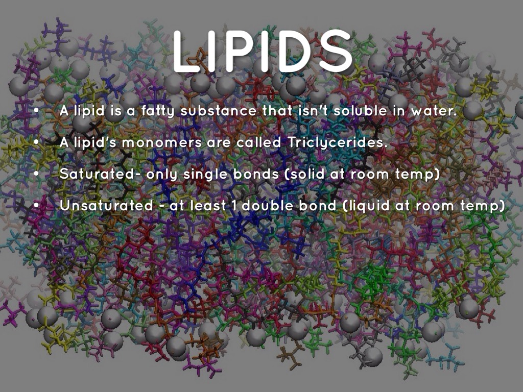 A lipid is a fatty substance that isn't soluble in water.