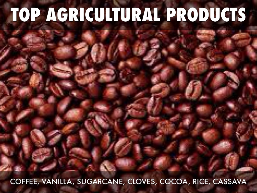 COFFEE, VANILLA, SUGARCANE, CLOVES, COCOA, RICE, CASSAVA