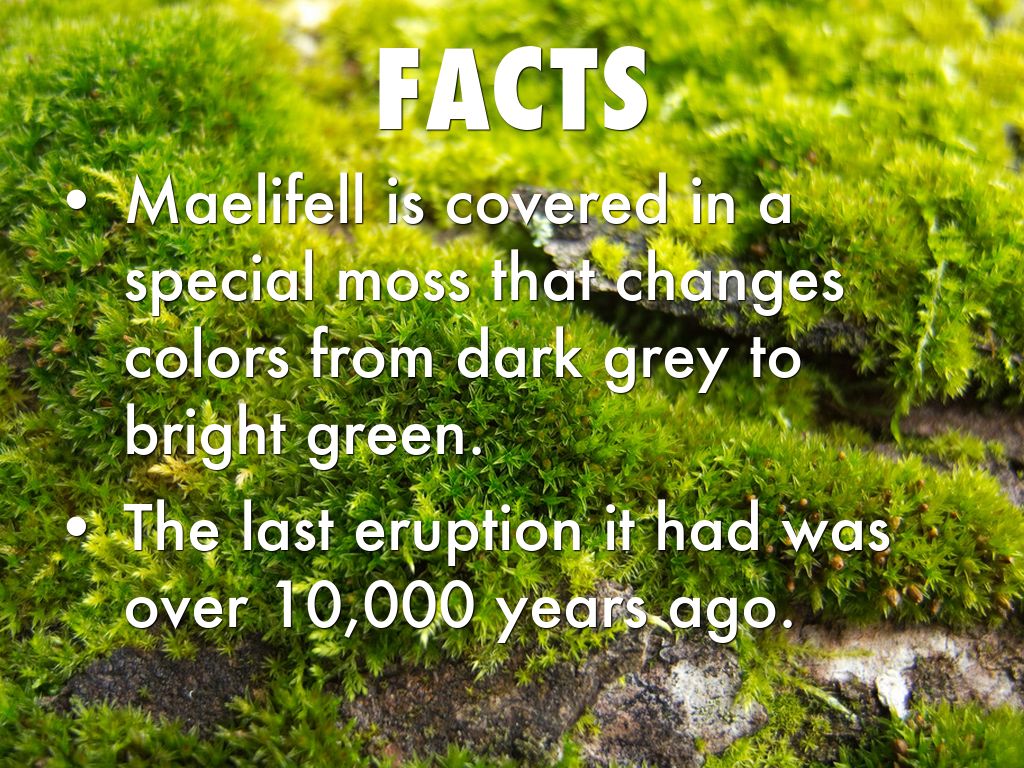 Maelifell is covered in a special moss that changes colors from dark grey to bright green.