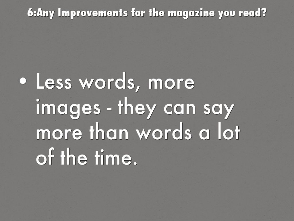 6:Any Improvements for the magazine you read?