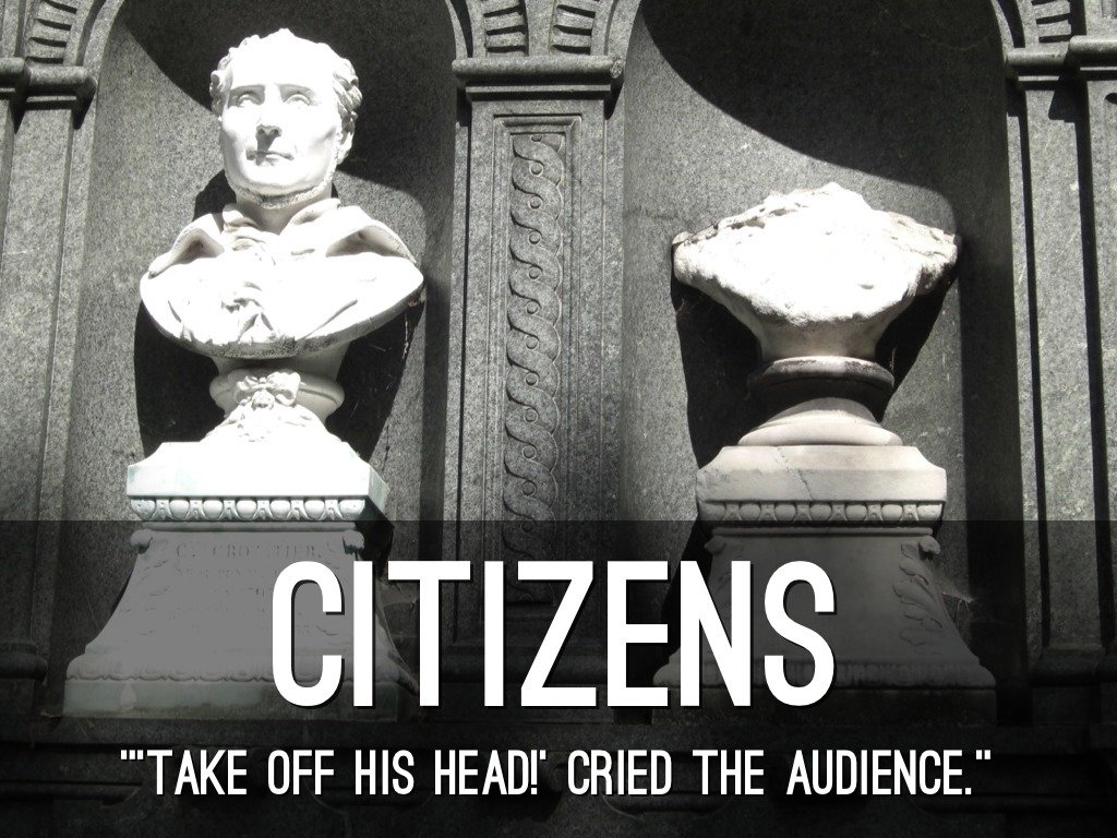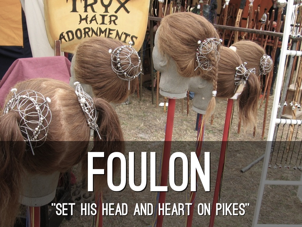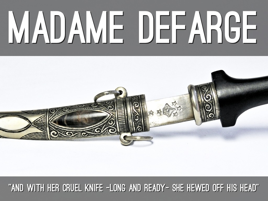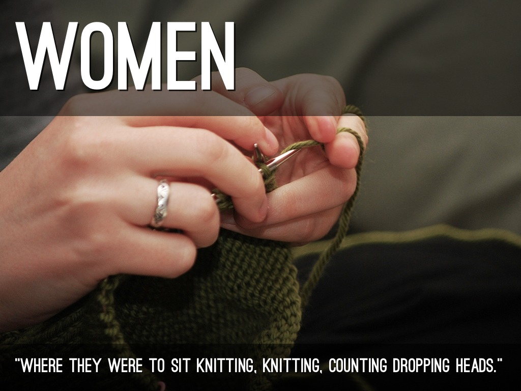 "Where they were to sit knitting, knitting, counting dropping heads."