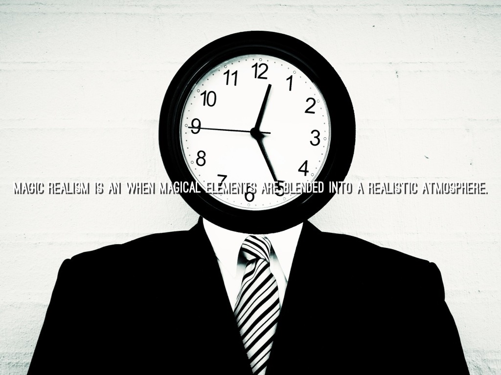 MAGIC REALISM IS AN WHEN MAGICAL ELEMENTS ARE BLENDED INTO A REALISTIC ATMOSPHERE.