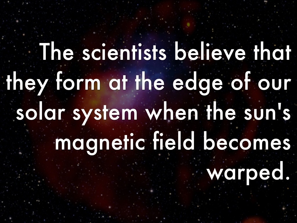 The scientists believe that they form at the edge of our solar system when the sun's magnetic field becomes warped.