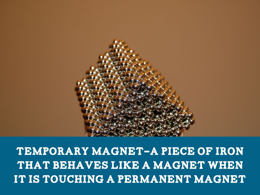 Temporary magnet-a piece of iron that behaves like a magnet when it is touching a permanent magnet