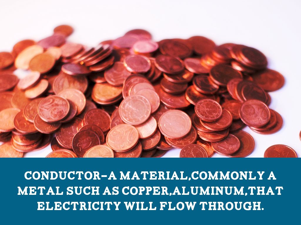 conductor-a material,commonly a metal such as copper,aluminum,that electricity will flow through.