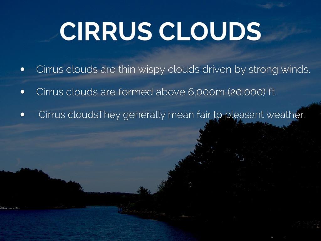 Cirrus cloudsThey generally mean fair to pleasant weather.