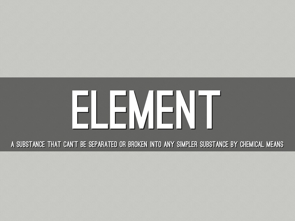 A SUBSTANCE THAT CAN'T BE SEPARATED OR BROKEN INTO ANY SIMPLER SUBSTANCE BY CHEMICAL MEANS