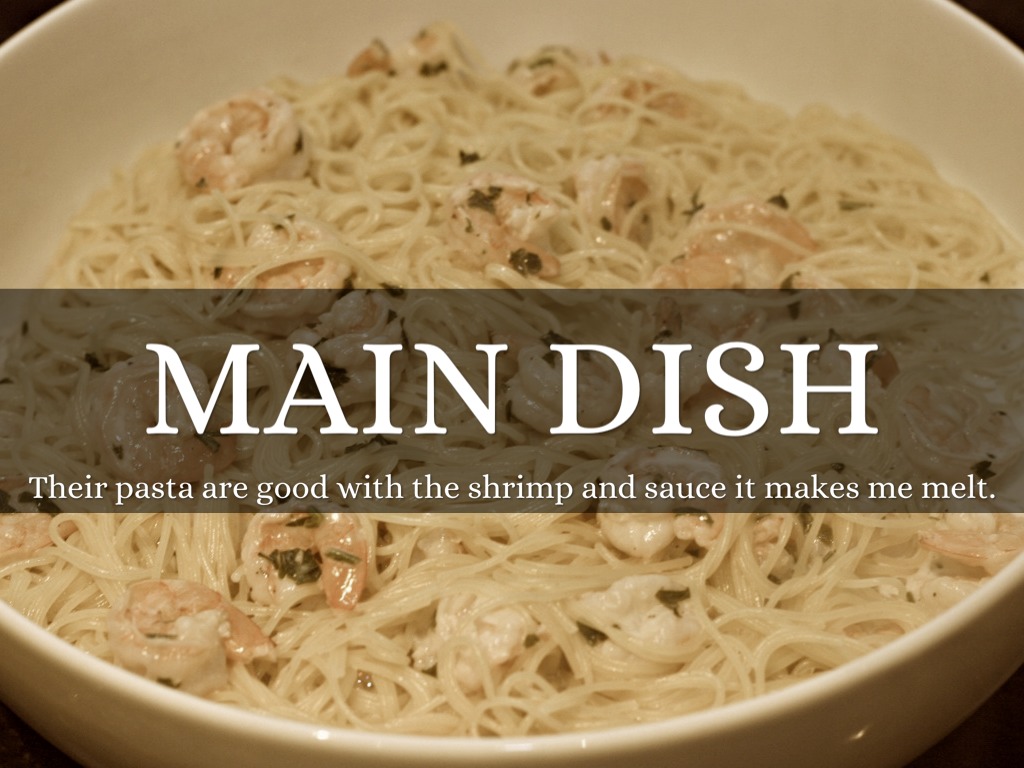 Their pasta are good with the shrimp and sauce it makes me melt.