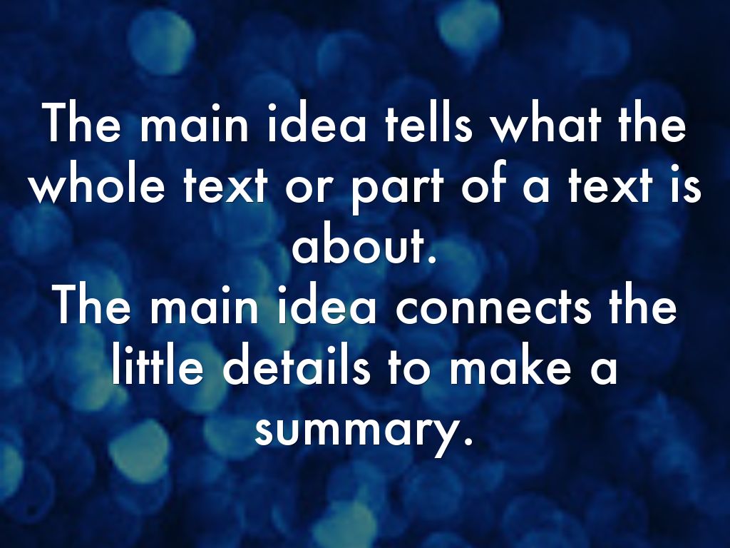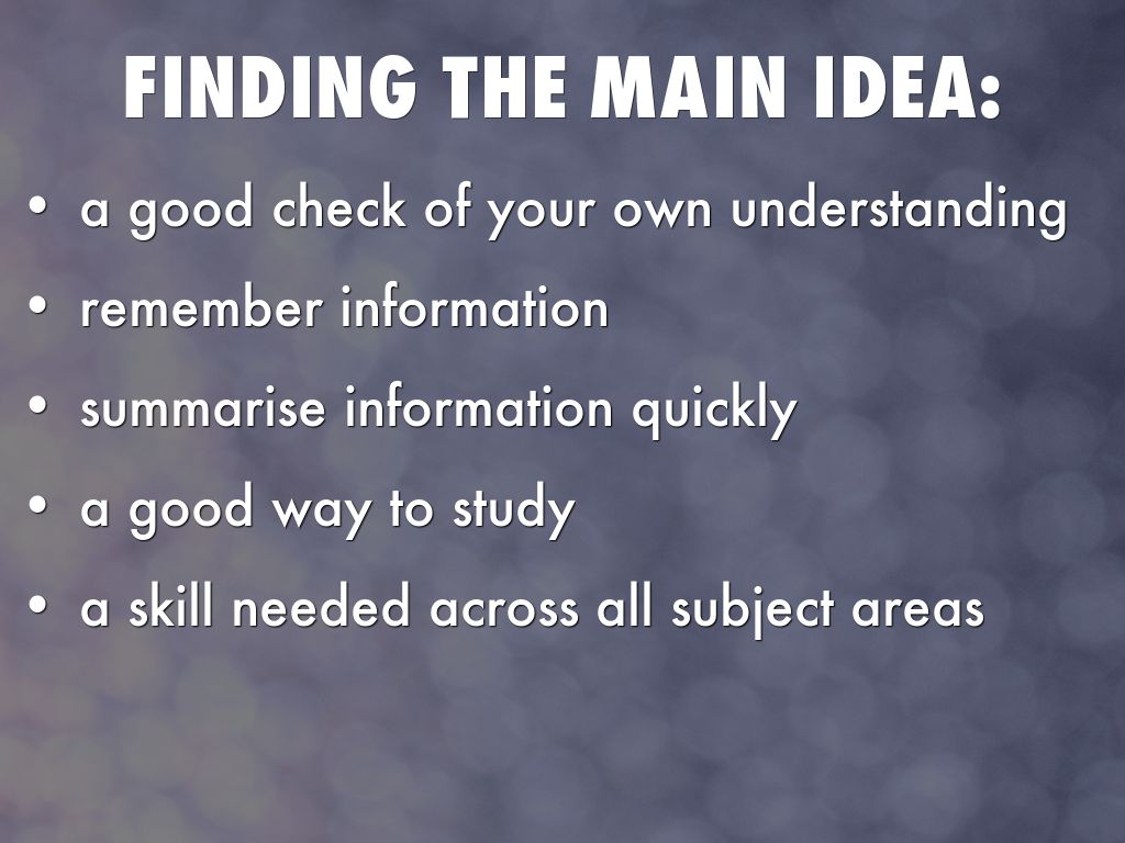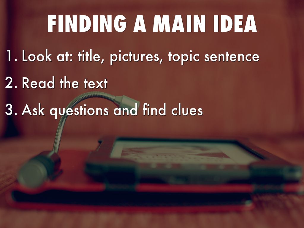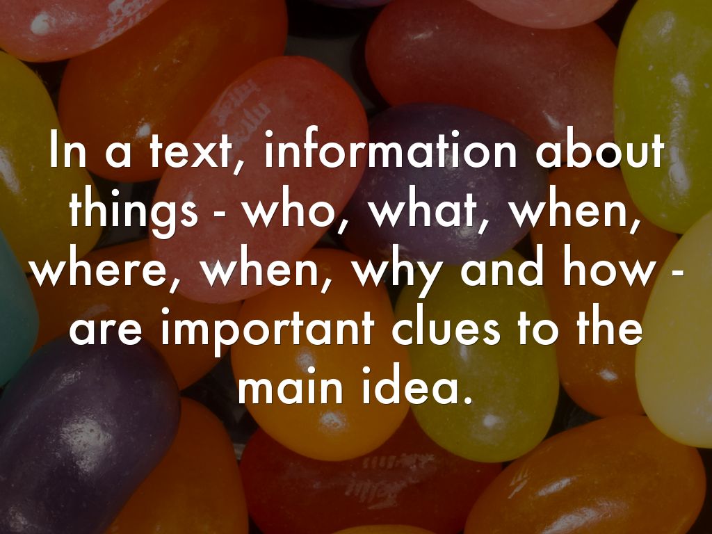 In a text, information about things - who, what, when, where, when, why and how - are important clues to the main idea.