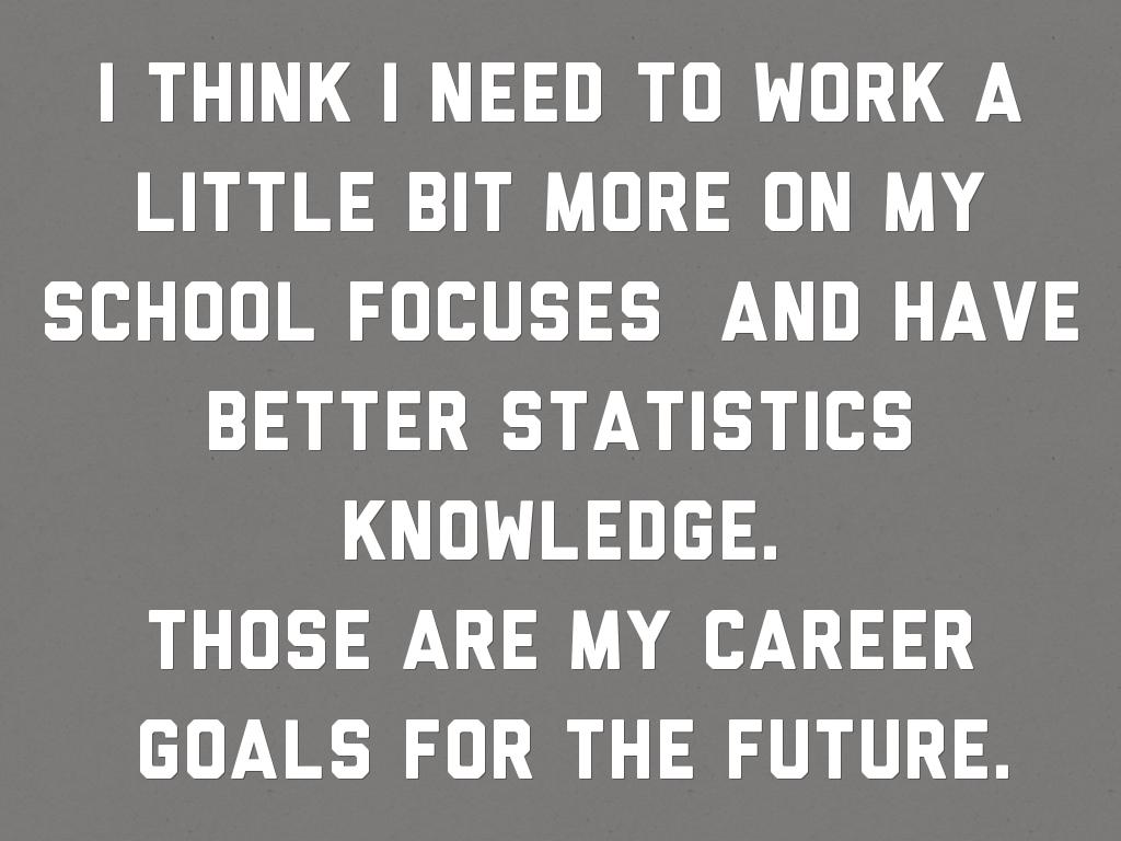 I think I need to work a little bit more on my school focuses and have better statistics knowledge.